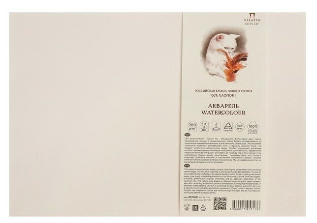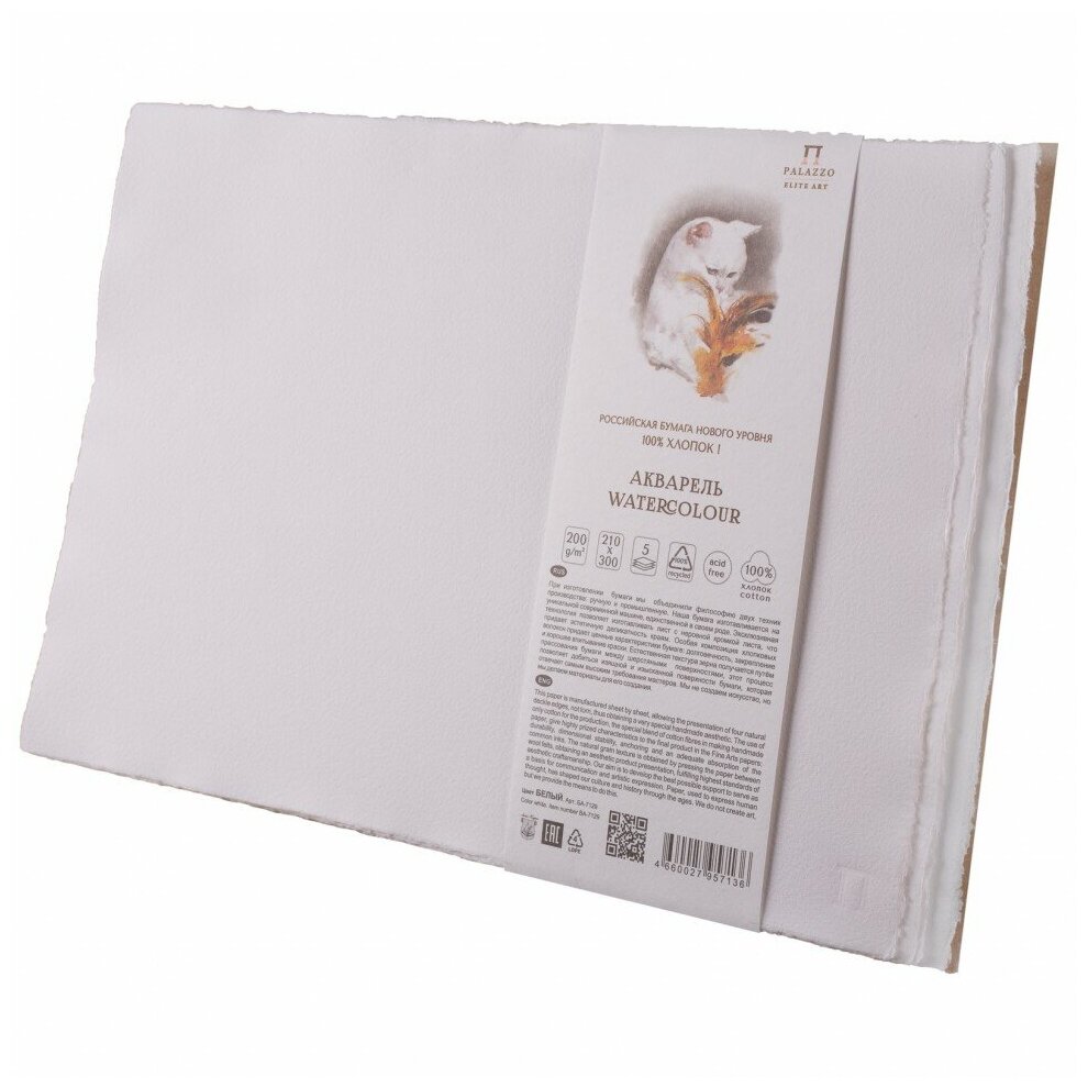 Акварельная бумага 21х30 см 100% хлопок, 200 гр./м2, Лилия Холдинг, упаковка 5 листов информация: