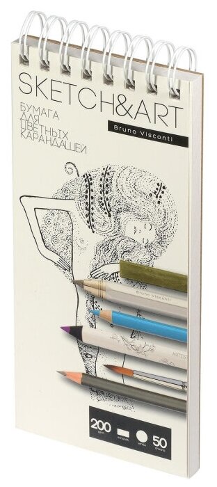 SKETCHBOOK SKETCH&ART BV,185х250 мм, 50 Л. 200 ГР. на гребне, для цветных карандашей, Арт. 1-50-557/01