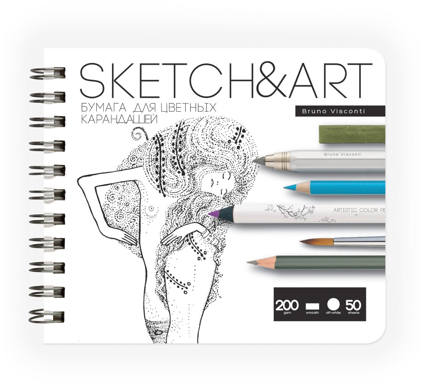 10 цен на SKETCHBOOK SKETCH&ART BV,180х155 мм, 50 Л. 200 ГР. на гребне, для цветных карандашей, Арт. 1-50-557/02