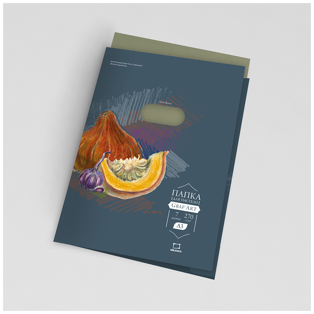 Бумага для пастели Малевичъ 7 л, А3, синяя, мелкое зерно, 270 гр/м², папка 524 ₽