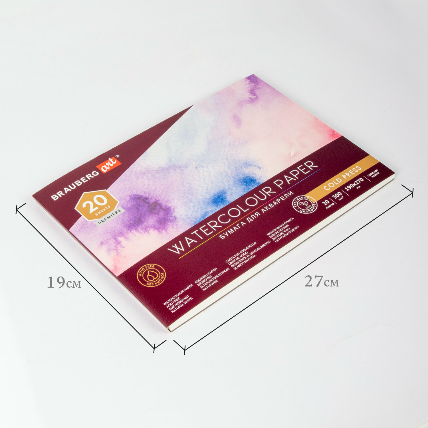Альбом для рисования для акварели, бумага 300 г/м2, 190х270 мм, среднее зерно, 20 листов, склейка, Brauberg Art Premiere, 113222 информация: