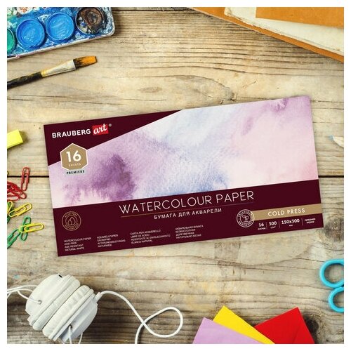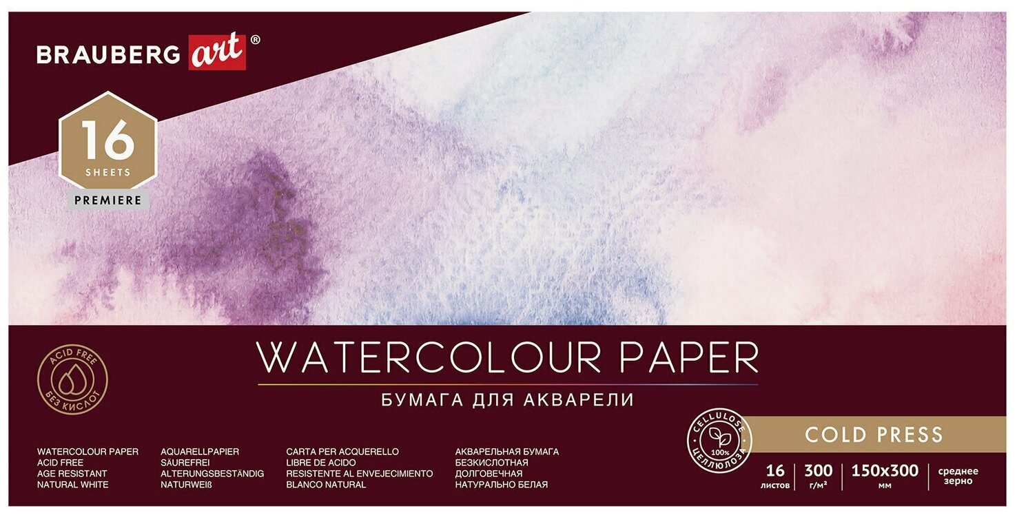 Альбом для акварели Brauberg Art Premiere, бумага 300 г/м2, 150х300 мм, среднее зерно, 16 листов, склейка информация: