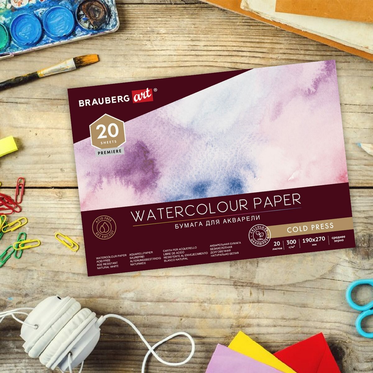 Альбом для акварели 190х270мм, 20л Brauberg Art Premiere (бумага 300 г/кв. м, среднее зерно) (113222), 20шт. информация: