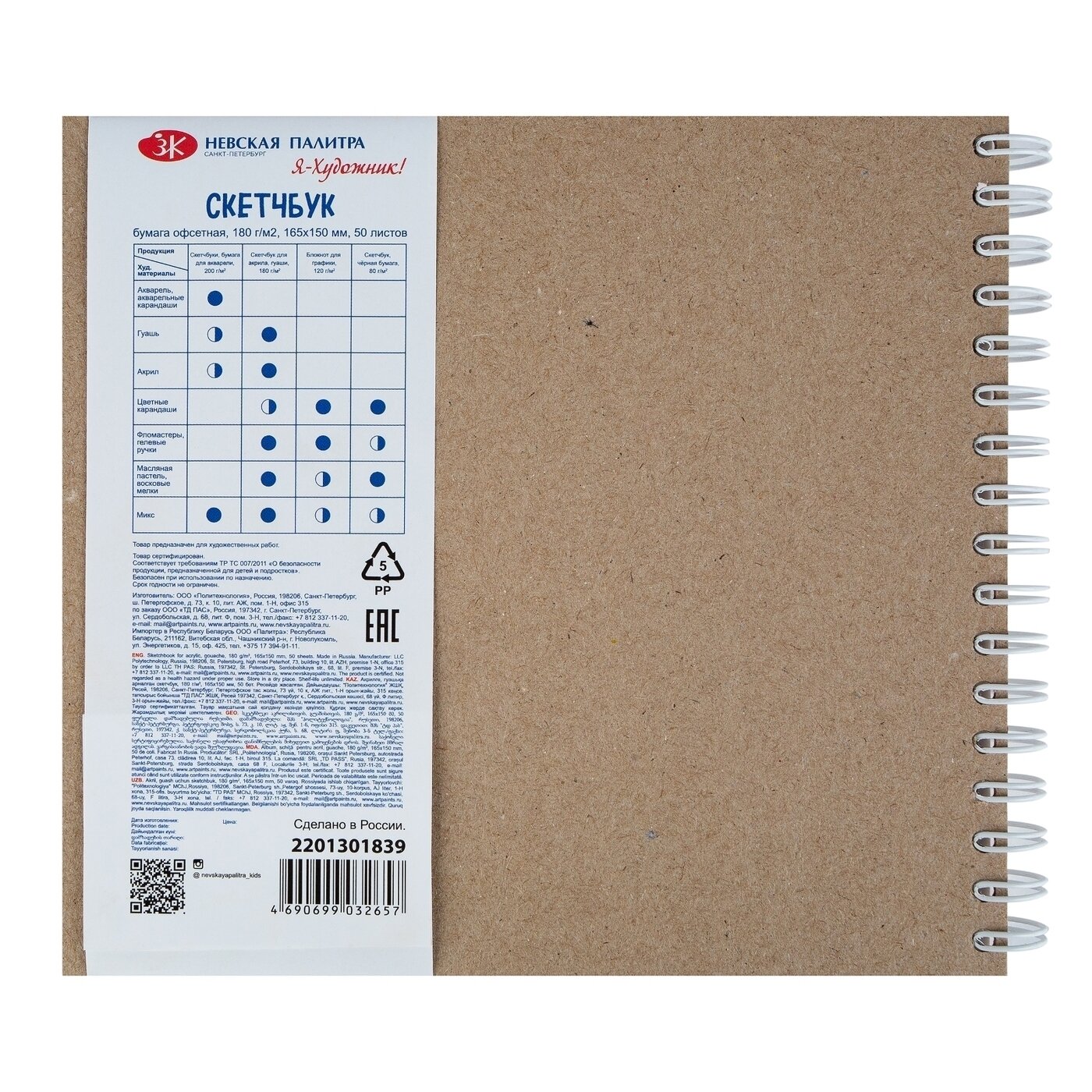 Скетчбук для гуаши и акрила Невская палитра Я-Художник, 145х204 мм, 50 листа 2201301838 информация: