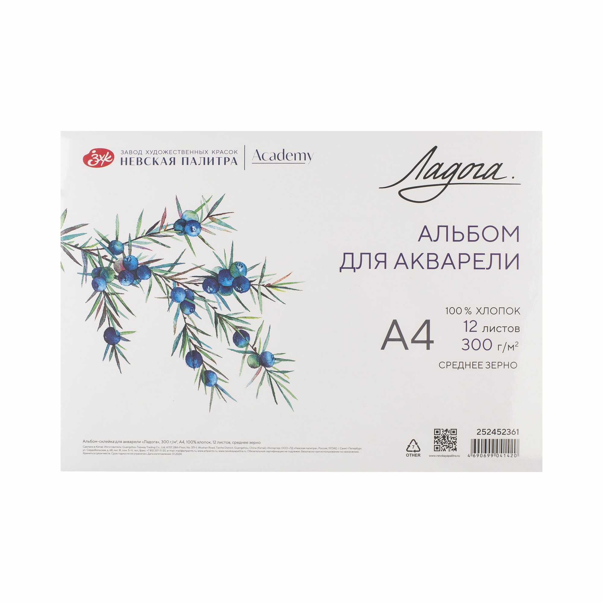 Альбом для рисования Невская палитра Ладога, А4, 100% хлопок, среднее зерно, 12 листов 252452361 информация: