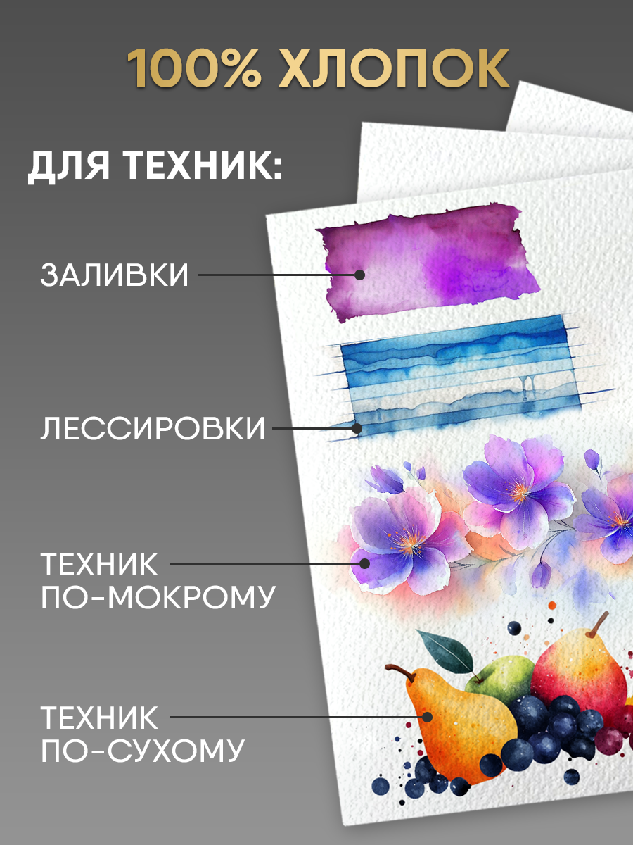Бумага BrunoVisconti, для акварели, акрила, А3 (420х297 мм), 10 л, 1 вид, Арт. 4-113