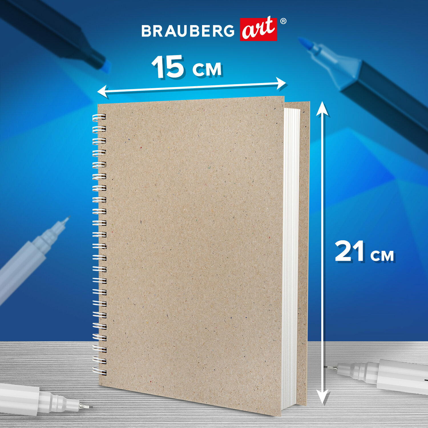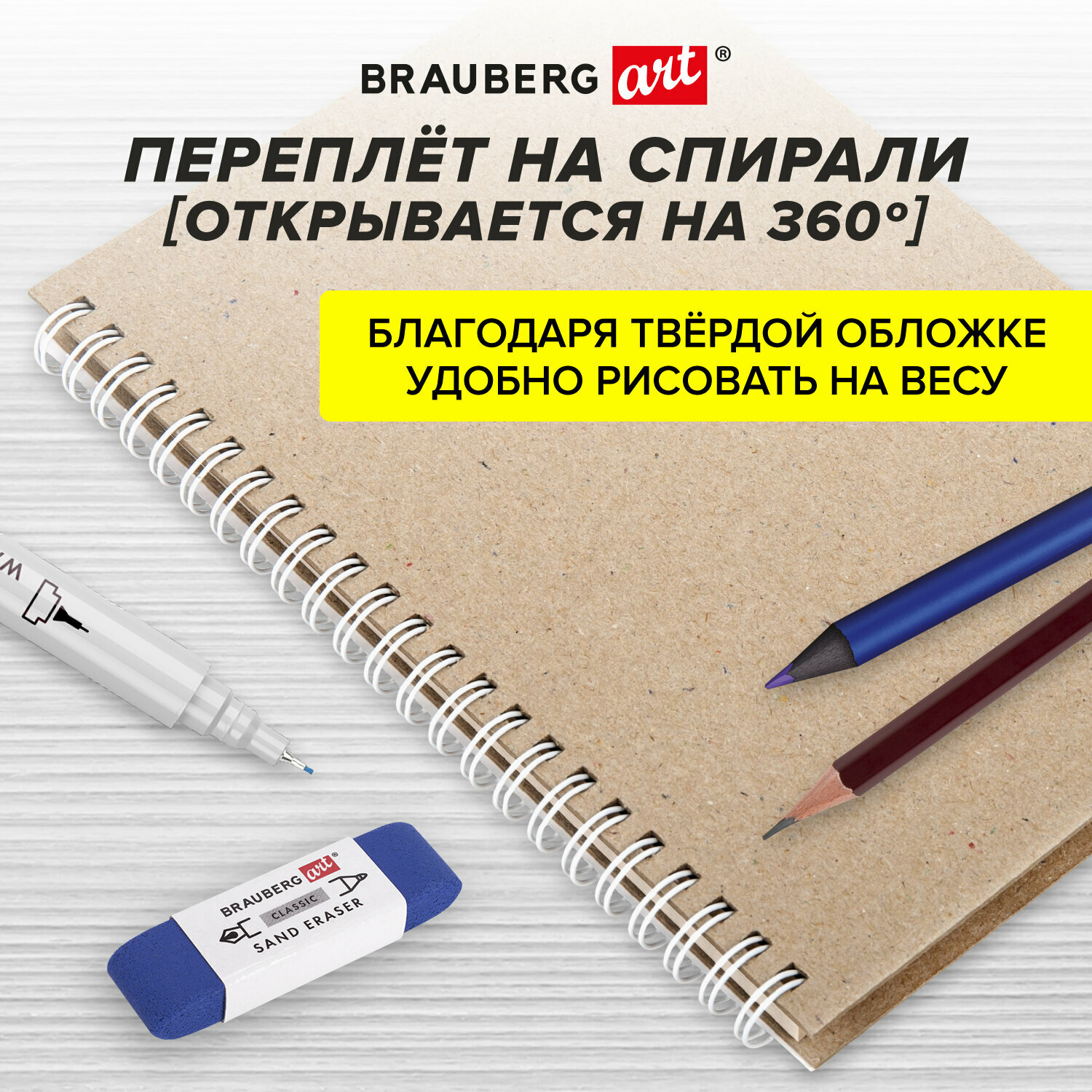 10 цен на Скетчбук А5 для рисования на спирали 60 листов, блокнот для скетчинга, гребень, плотная белая бумага, 15 х 21 см, 160 г/м2, обложка твердая крафт, BRAUBERG ART CLASSIC, 116365