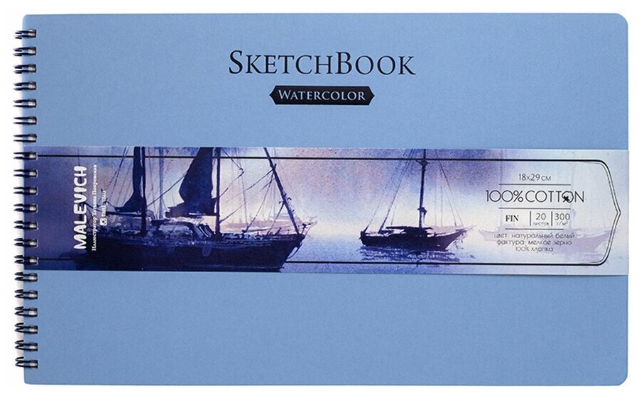 Скетчбук для акварели Малевичъ, 100% хлопок, 300 г/м, 18х29, 20л информация: