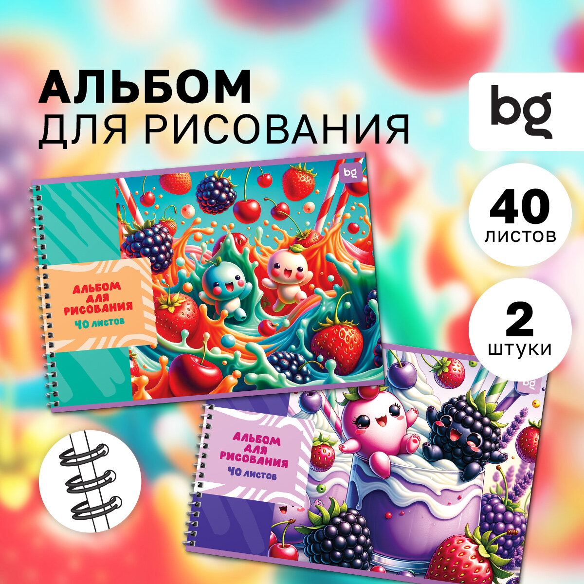 Альбом для рисования 40л, А4, на гребне BG "Сочные ягоды", 2 шт. информация:
