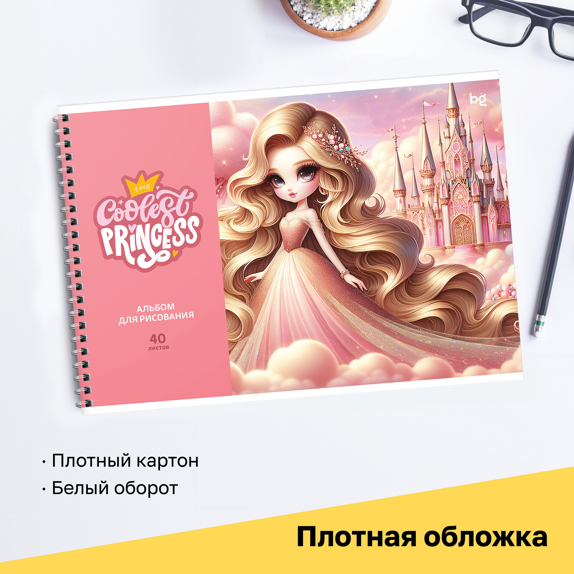 Альбом для рисования 40л, А4, на гребне BG "Princess", 2 шт. информация: