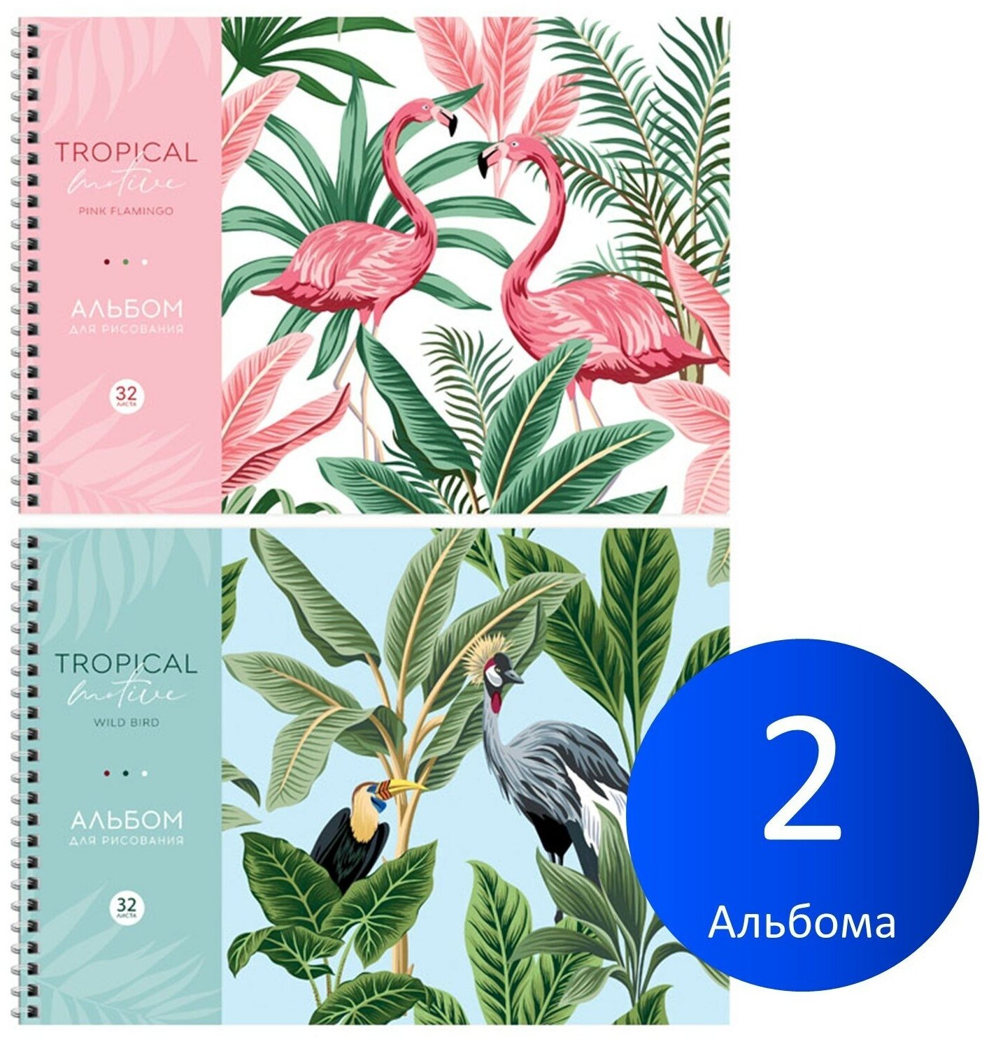 Альбом для рисования А4 ArtSpace "Цветы. Тропики" комплект 2 штуки, 32 листа на гребне информация: