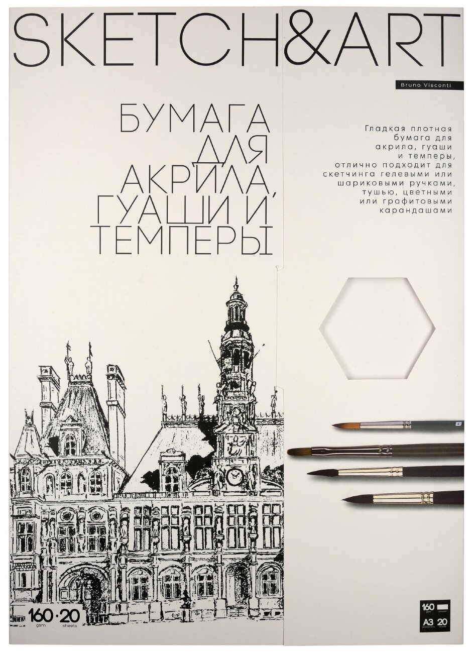 10 цен на Бумага SKETCH&ART для акрила, гуаши И темперы В папке 160 гр. А3 (297х420 мм), 20 л, Арт. 4-20-150/03