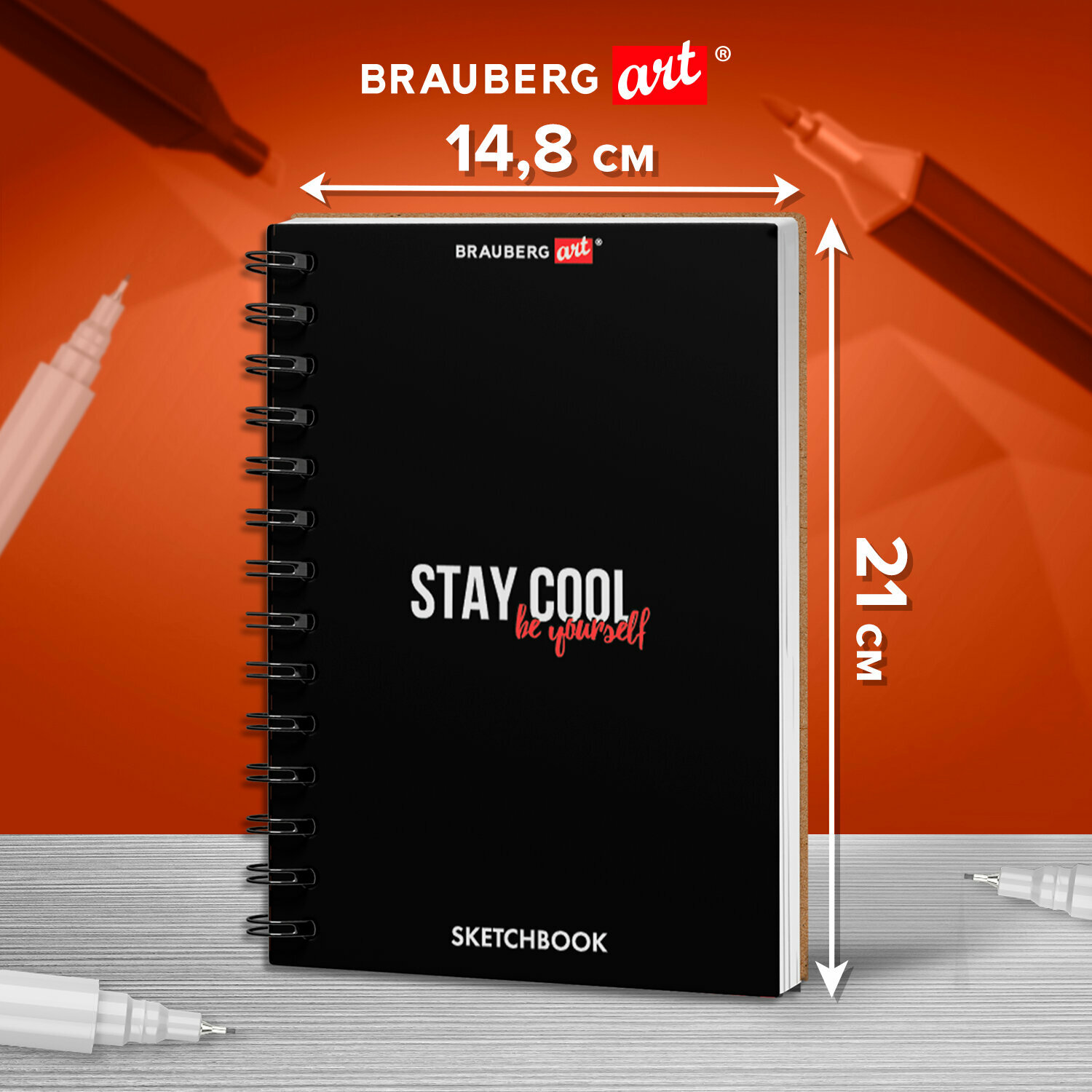 Скетчбук для графики и маркеров, бристоль 200г, 195х195мм, 32л, кожзам, BRAUBERG ART, Черный, 115100 696 ₽