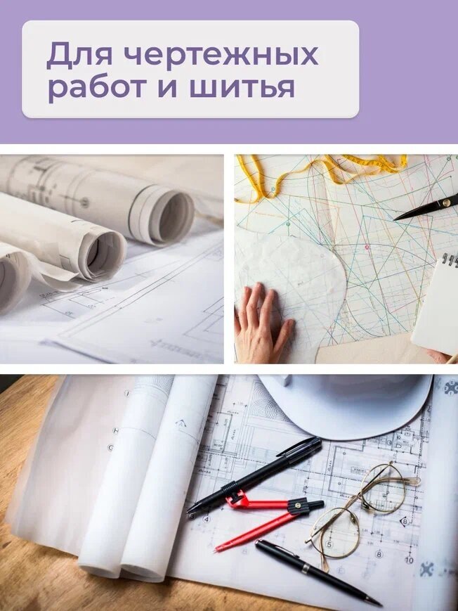 Отзывы на Калька под тушь AXLER, белая прозрачная бумага для выкроек чертежных и дизайнерских работ, рулон 20 м, 420 мм, 30 г/м2