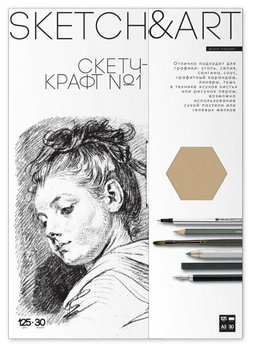 Бумага SKETCH&ART скетч-крафт В папке 125 г/м2 А3 (297х420 мм), 30 л, Арт. 4-30-151/03 информация: