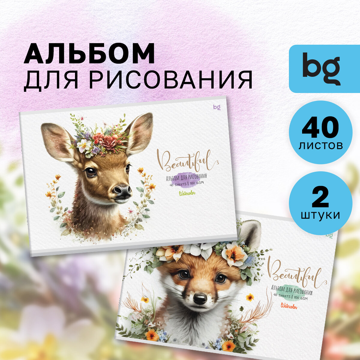 Альбом для рисования 40 листов, А4, на скрепке BG "Beautiful", 2 шт. информация: