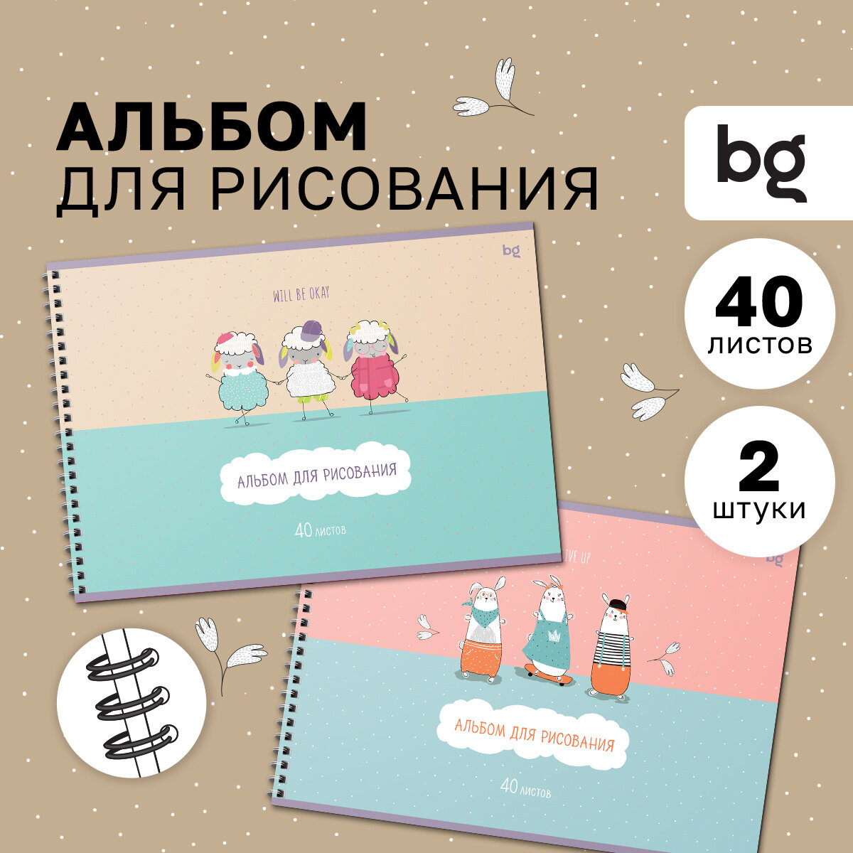 Альбом для рисования 40л, А4, на гребне BG "Веселая компания", 2 шт. информация: