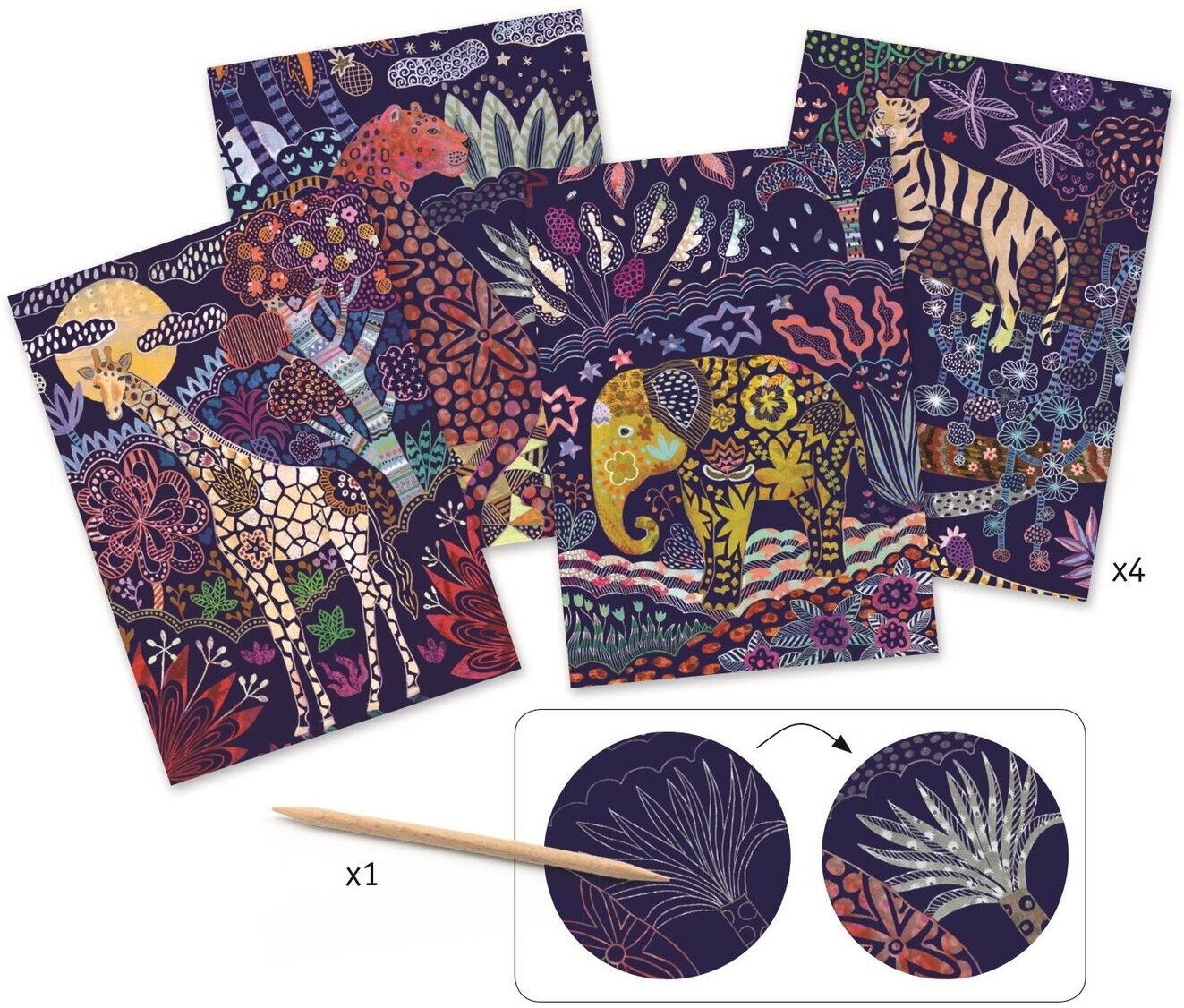 Набор для творчества Djeco "Богатства природы", гравюра, цветная основа, 4шт информация: