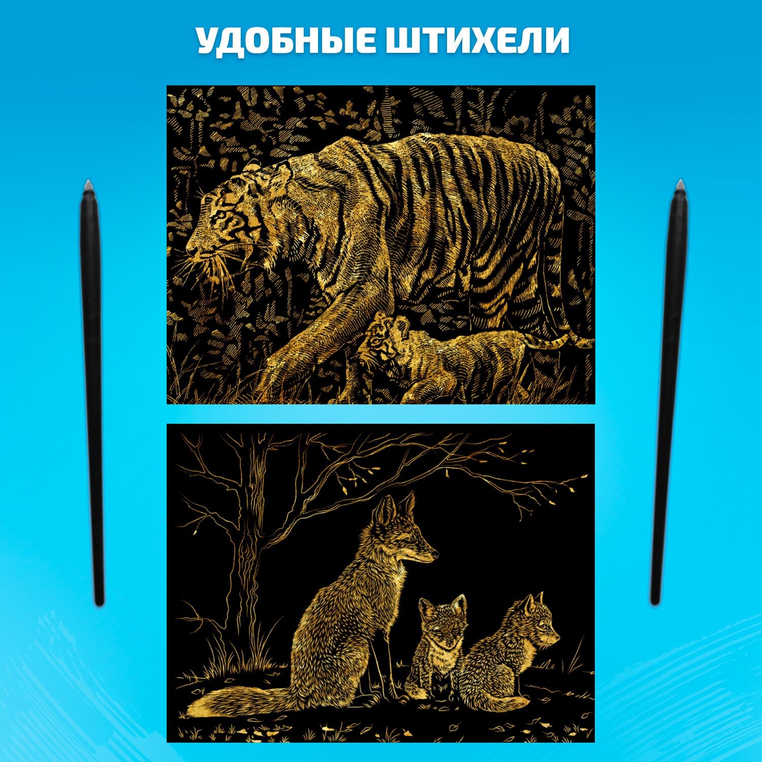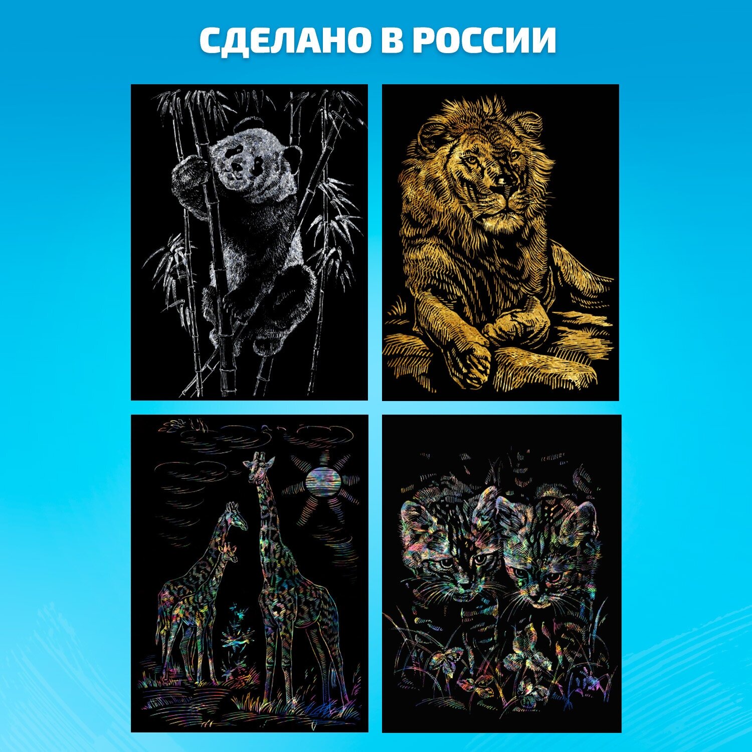 10 цен на Набор для творчества гравюра скретч картина для детей LORI Дикие животные, 18х24 см, 8 шт, Им-349