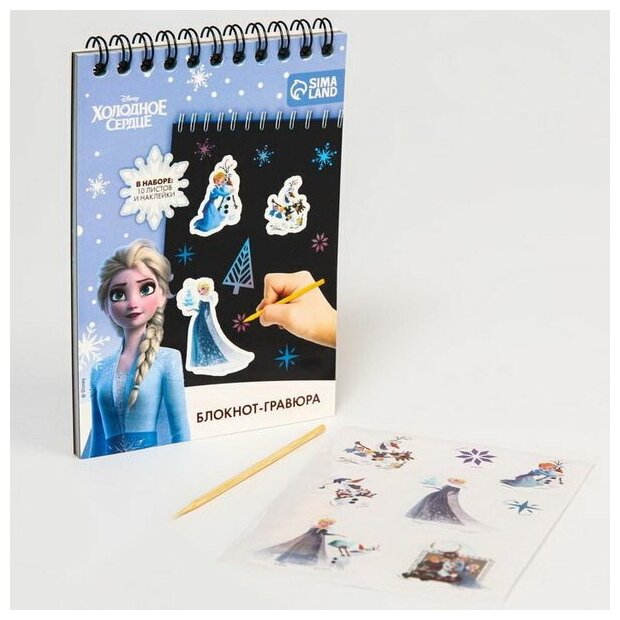 10 цен на Гравюра блокнот детский "Холодное сердце", 10 листов, наклейки