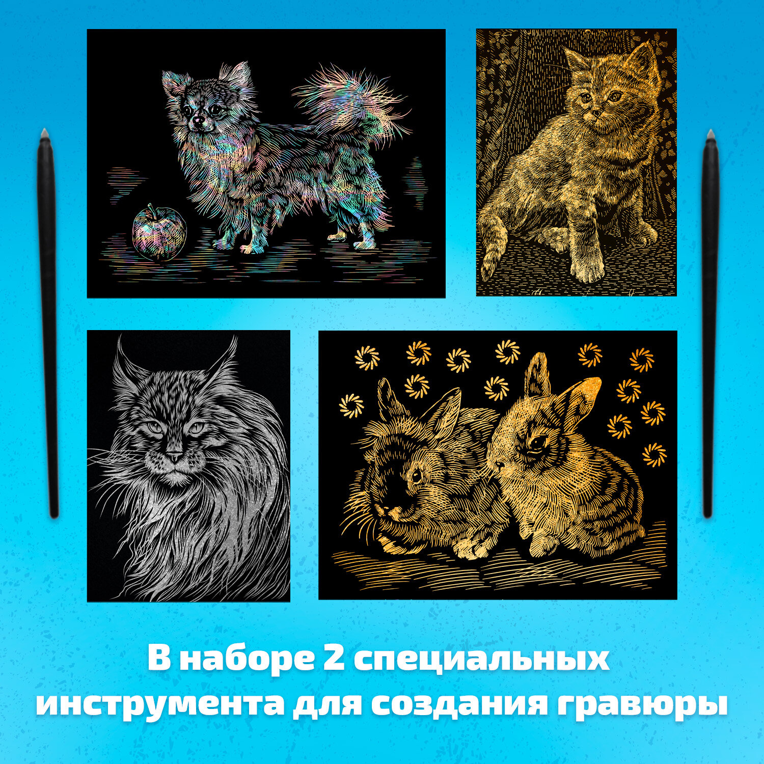 10 цен на Набор для творчества гравюра скретч картина LORI Домашние любимцы Животные, 18х24 см, 8 шт, Им-183