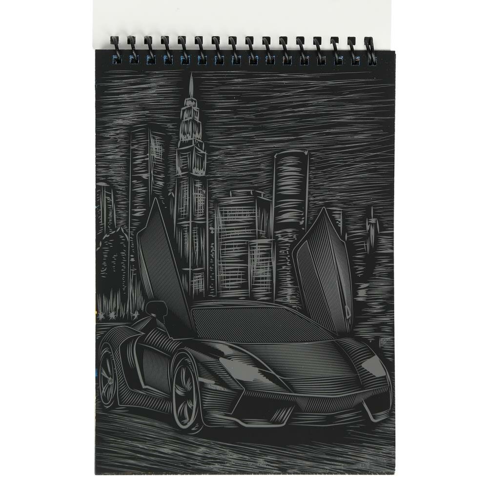 10 цен на Набор для творчества блокнот скретчинг с гравюрами для детей Крутые тачки 8 картинок, Мульти Арт