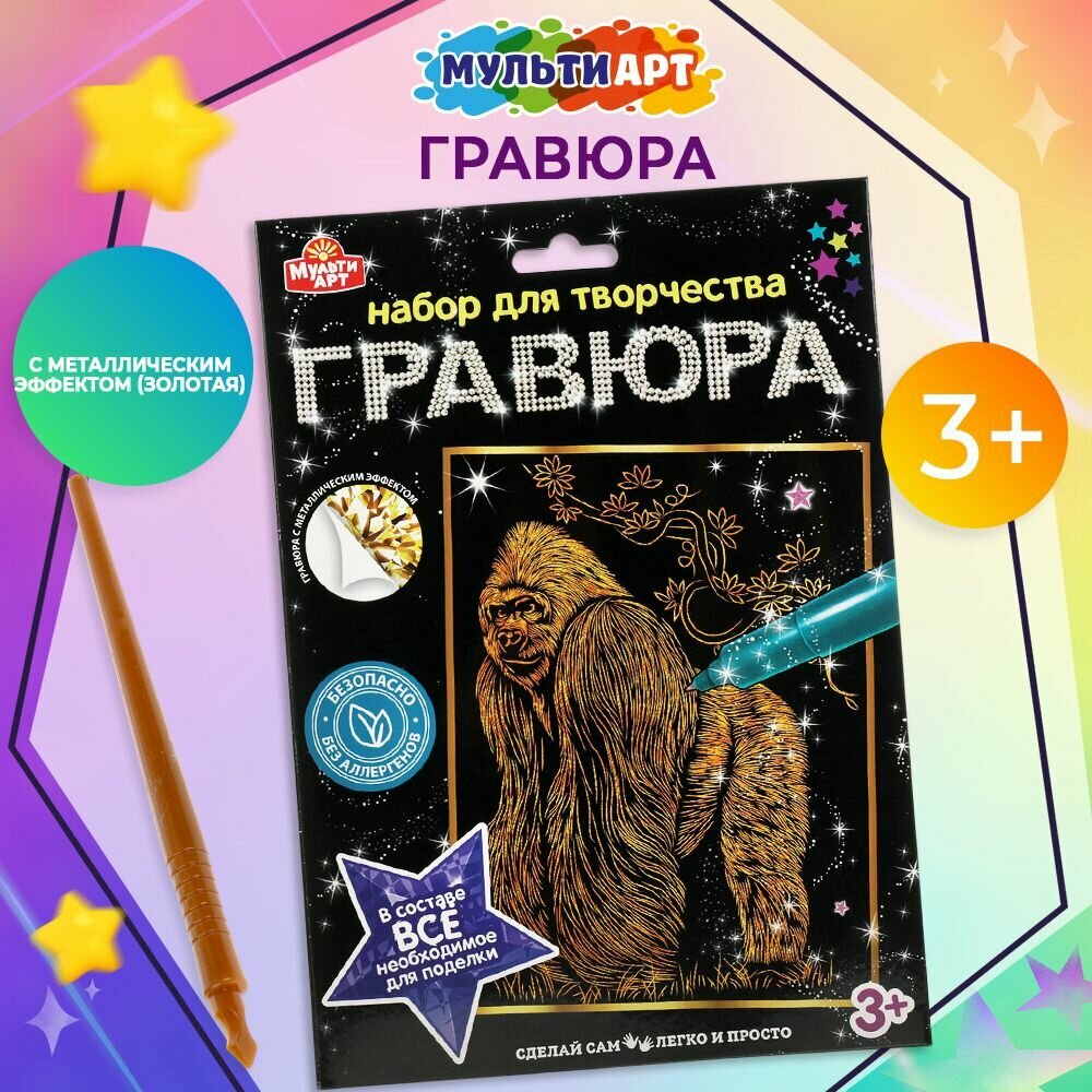 Гравюра для детей Горилла Мульти Арт набор для творчества 18 х 24 см информация: