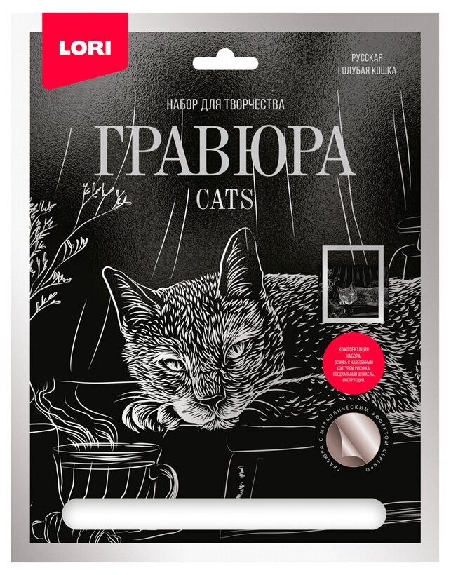 Набор для творчества Гравюра большая с эффектом серебра "Русская голубая кошка" Гр-671 Lori 977-339 информация:
