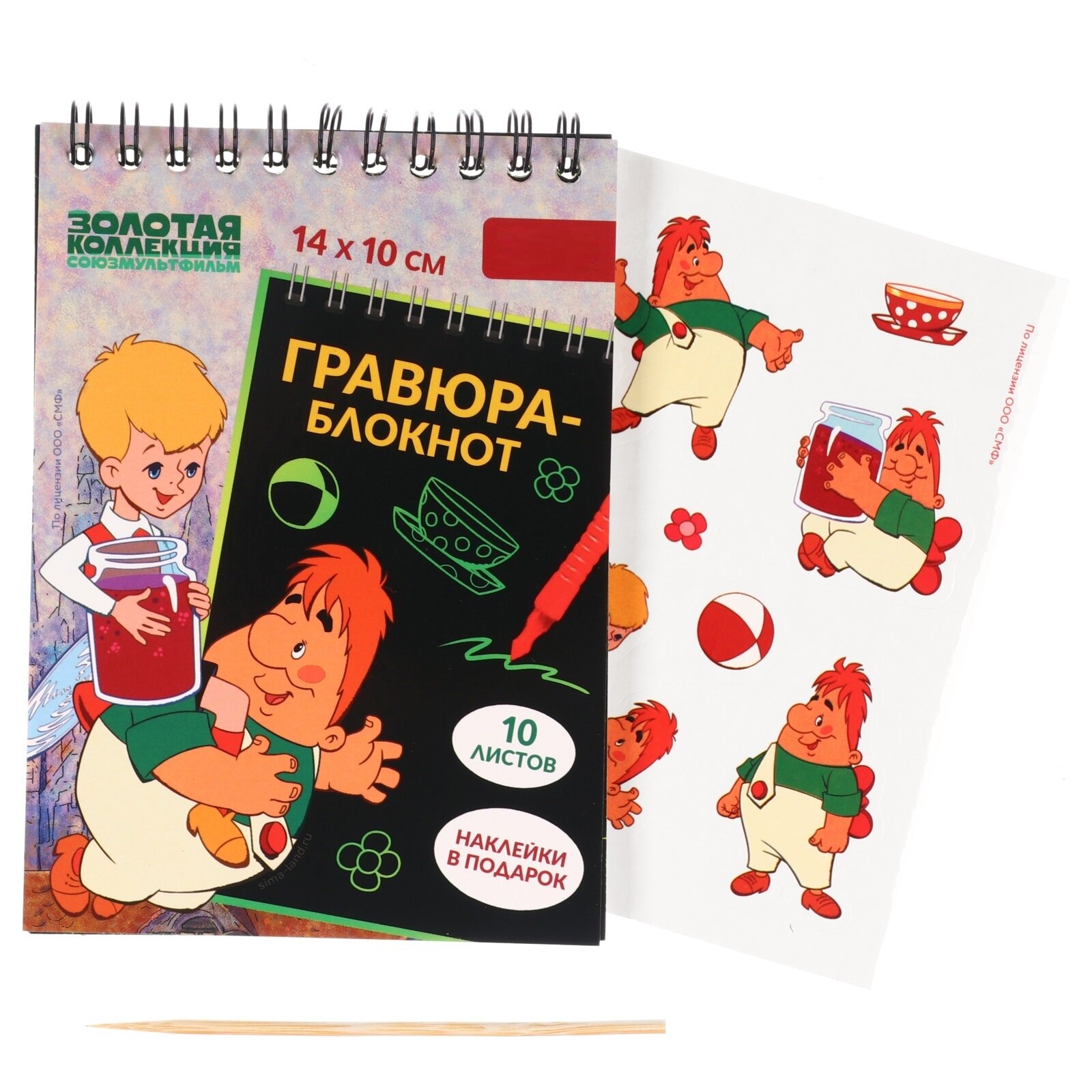 10 цен на Блокнот-гравюра "Карлсон", 10 листов, лист наклеек, штихель, формат А6