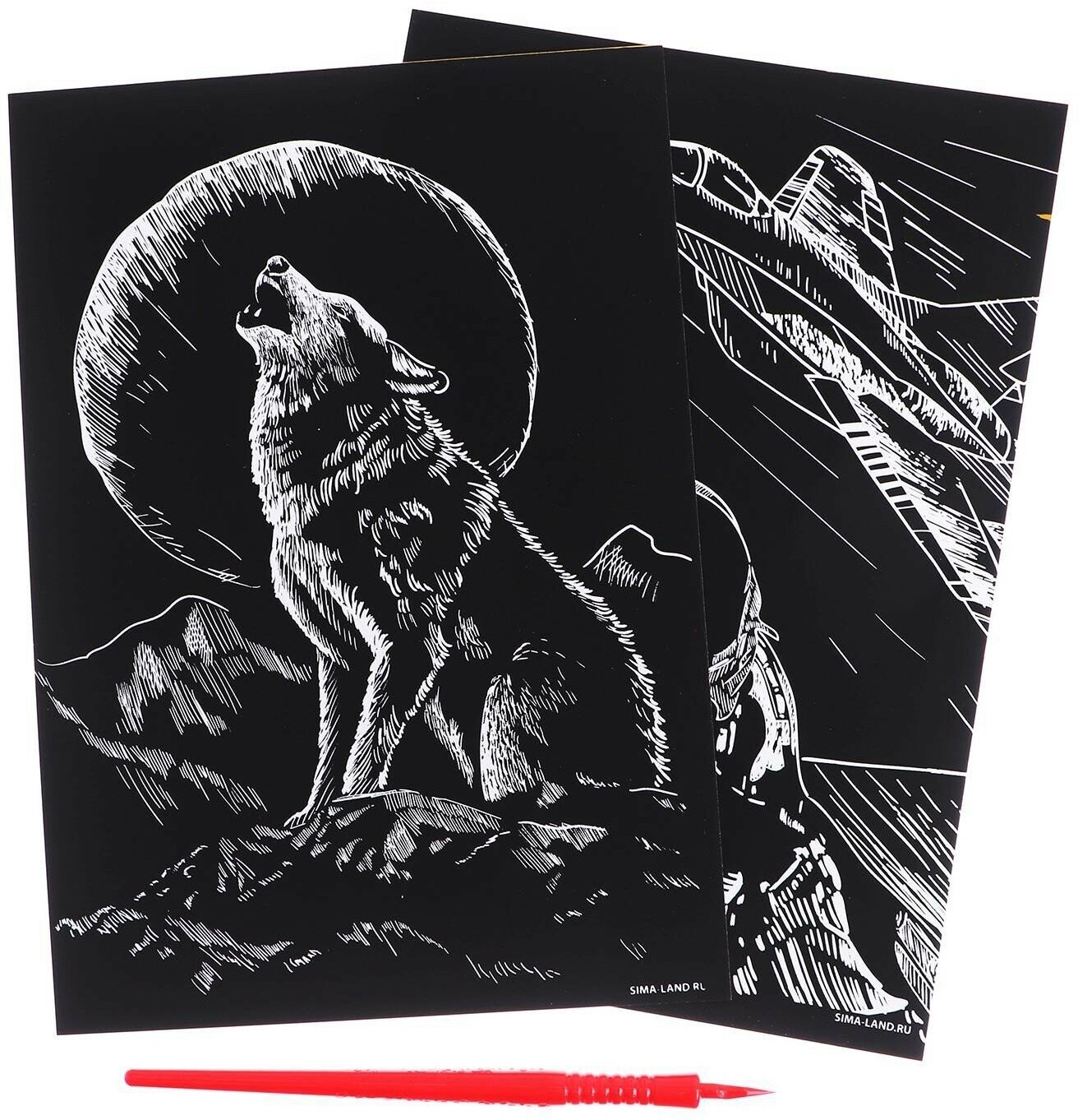 10 цен на Набор гравюр А5 "Волк и летчик" с золотой основой и металлическим эффектом, 2 шт.