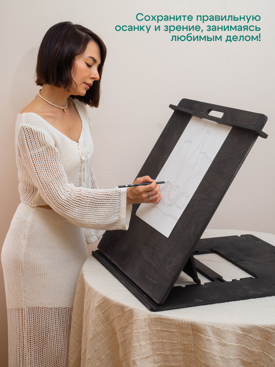 Отзывы на Мольберт для рисования А2 от "Растульчик", настольный, с регулировкой наклона, темный дуб