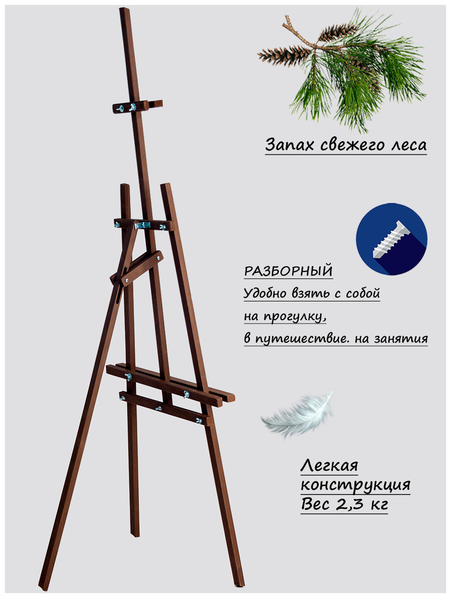Мольберт Лира для рисования The Old Master, 150 см, напольный, складной, разборный, легкая сборка, коричневый венге информация: