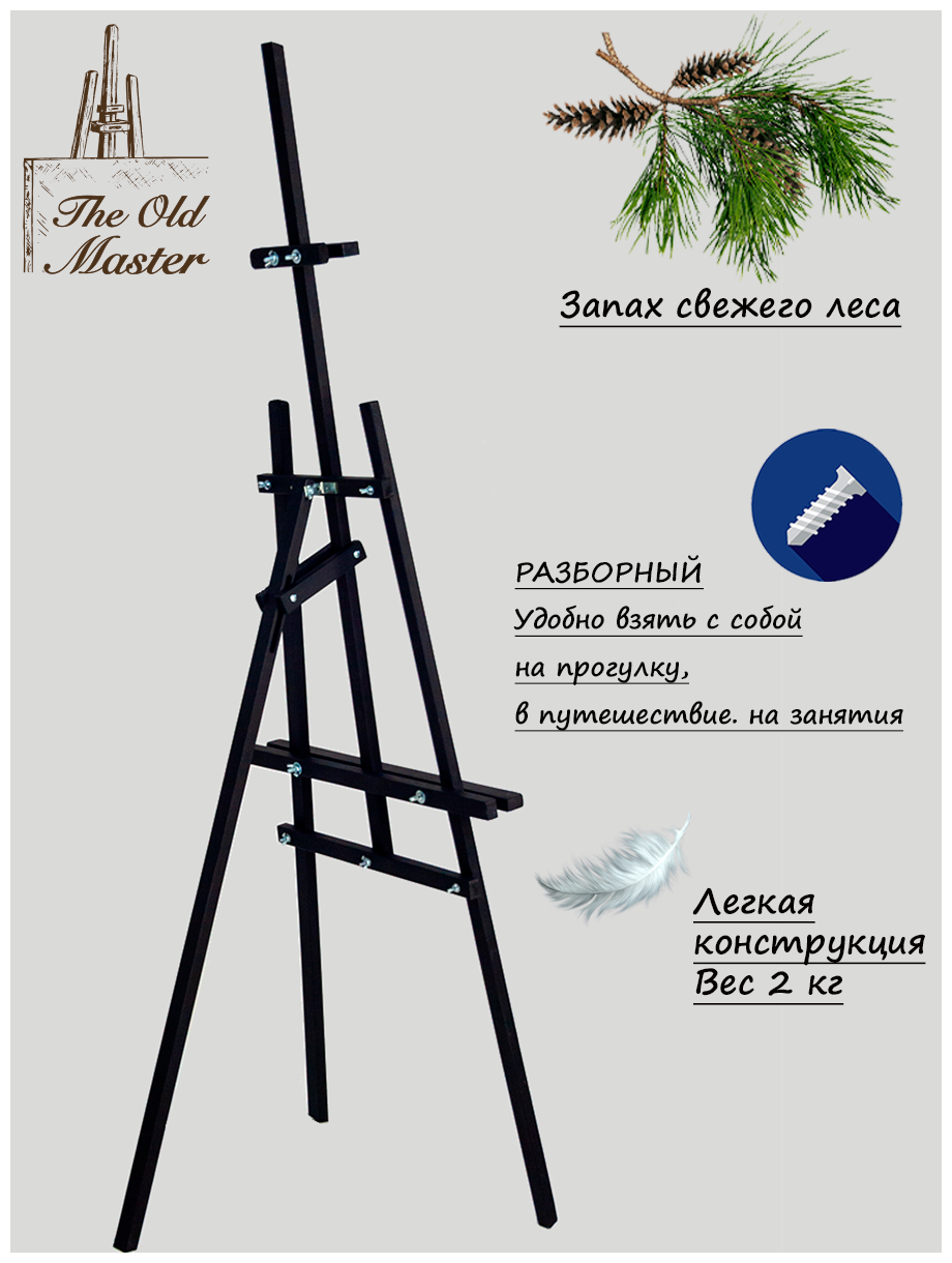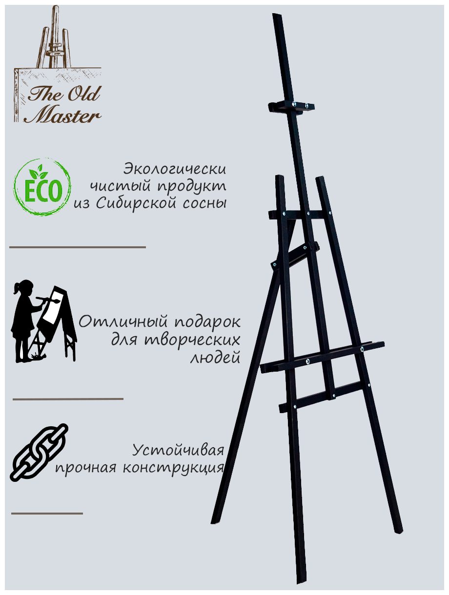 Мольберт Лира для рисования The Old Master, 150 см, напольный, складной, разборный, легкая сборка, черный полуглянцевый информация: