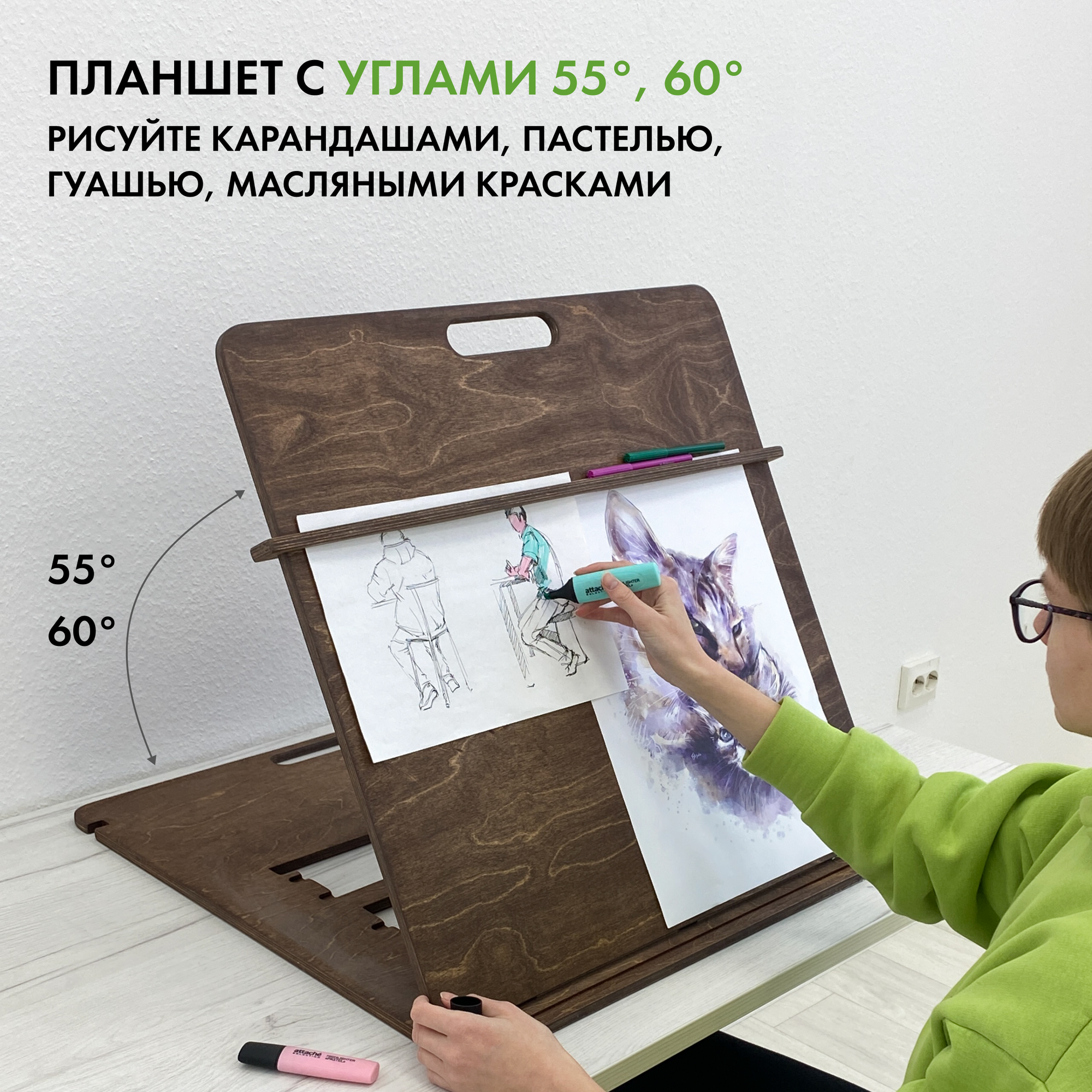 Отзывы на Мольберт для рисования настольный А2, темный орех, с защитной накладкой