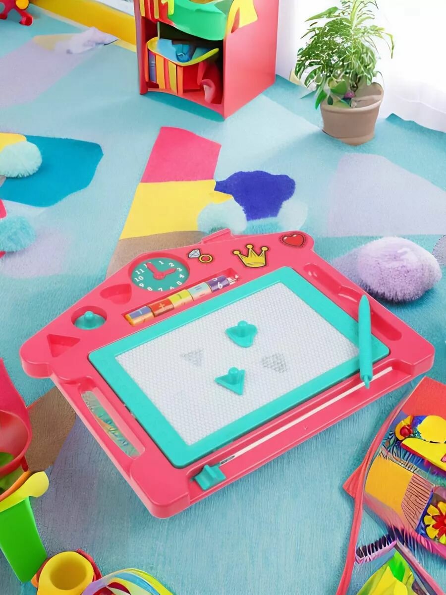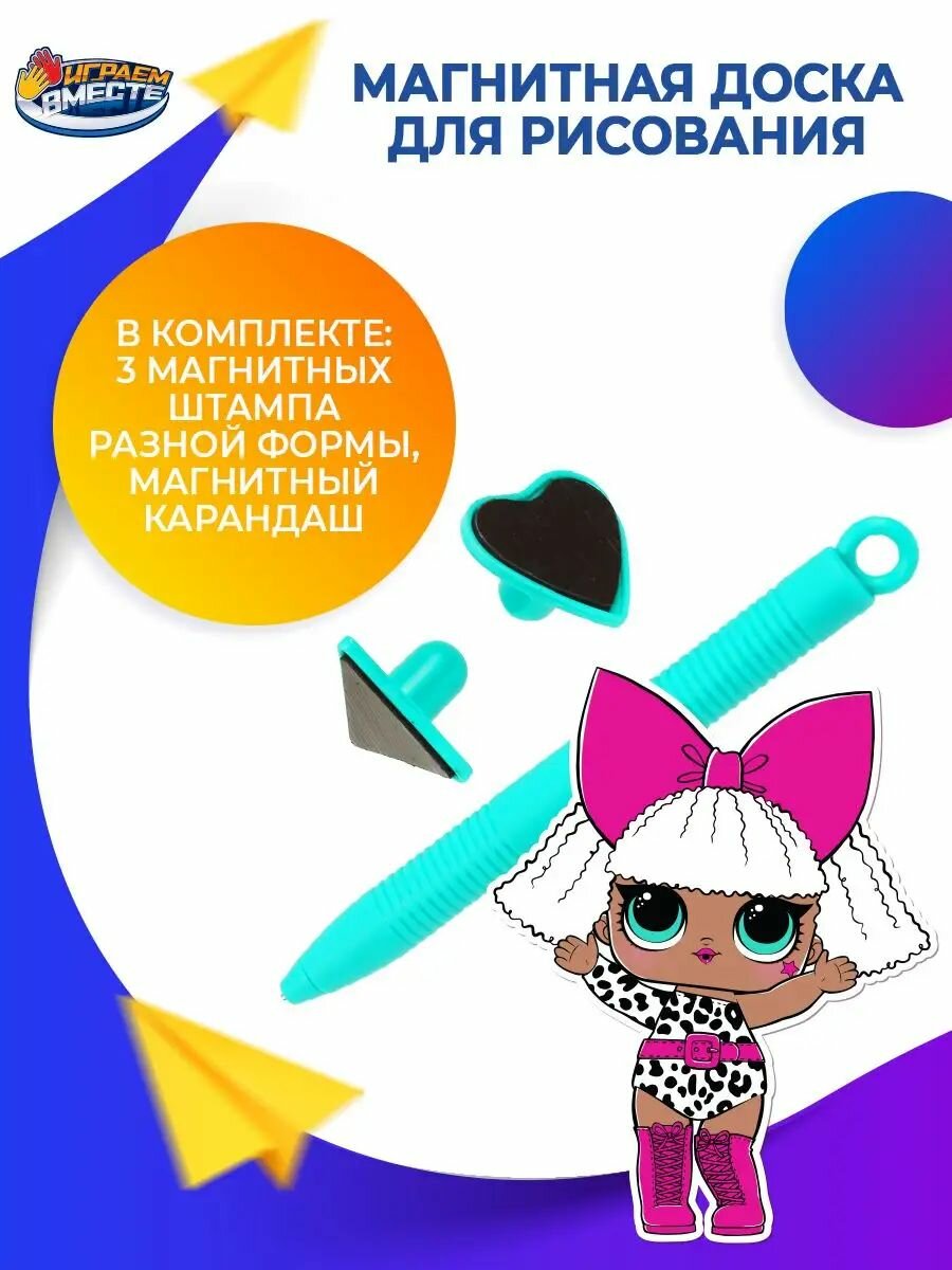 Детская доска для рисования магнитная Принцессы Лол Играем вместе / счеты + часы + 3 штампа информация: