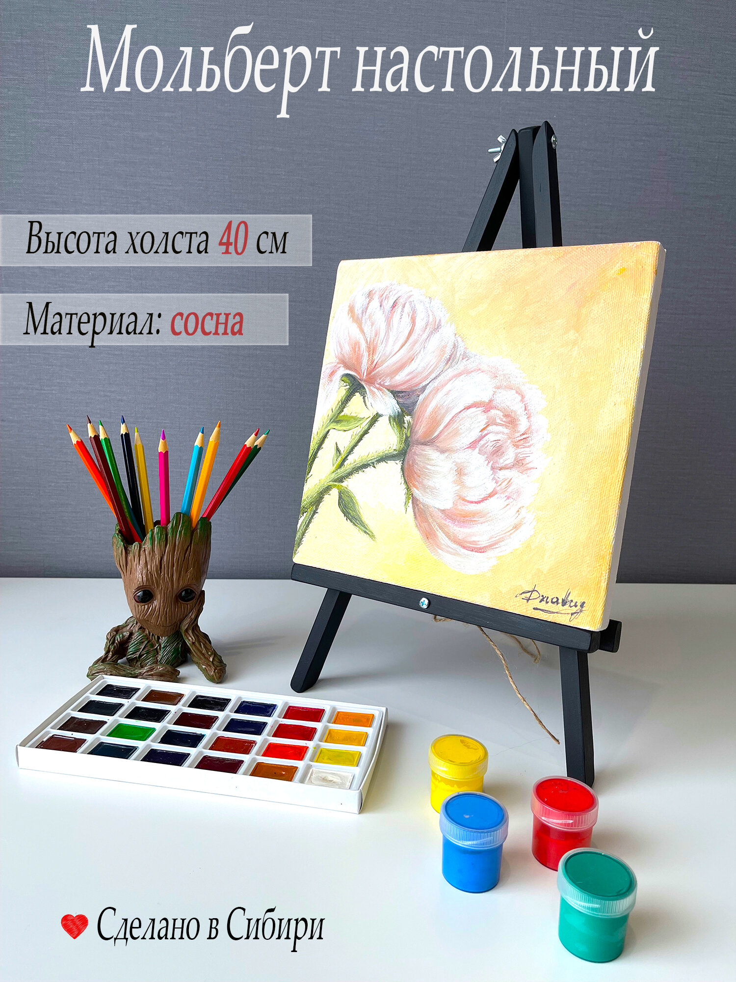 Мольберт для рисования настольный деревянный 33*40*46(68)см складной каркасный вертикальный / творчество и рукоделие для художников