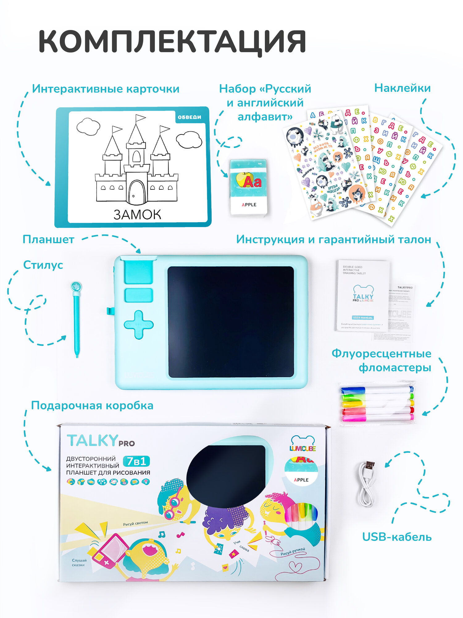 Обучающий планшет для рисования двусторонний детский LUMICUBE TALKY PRO, ментоловый информация:
