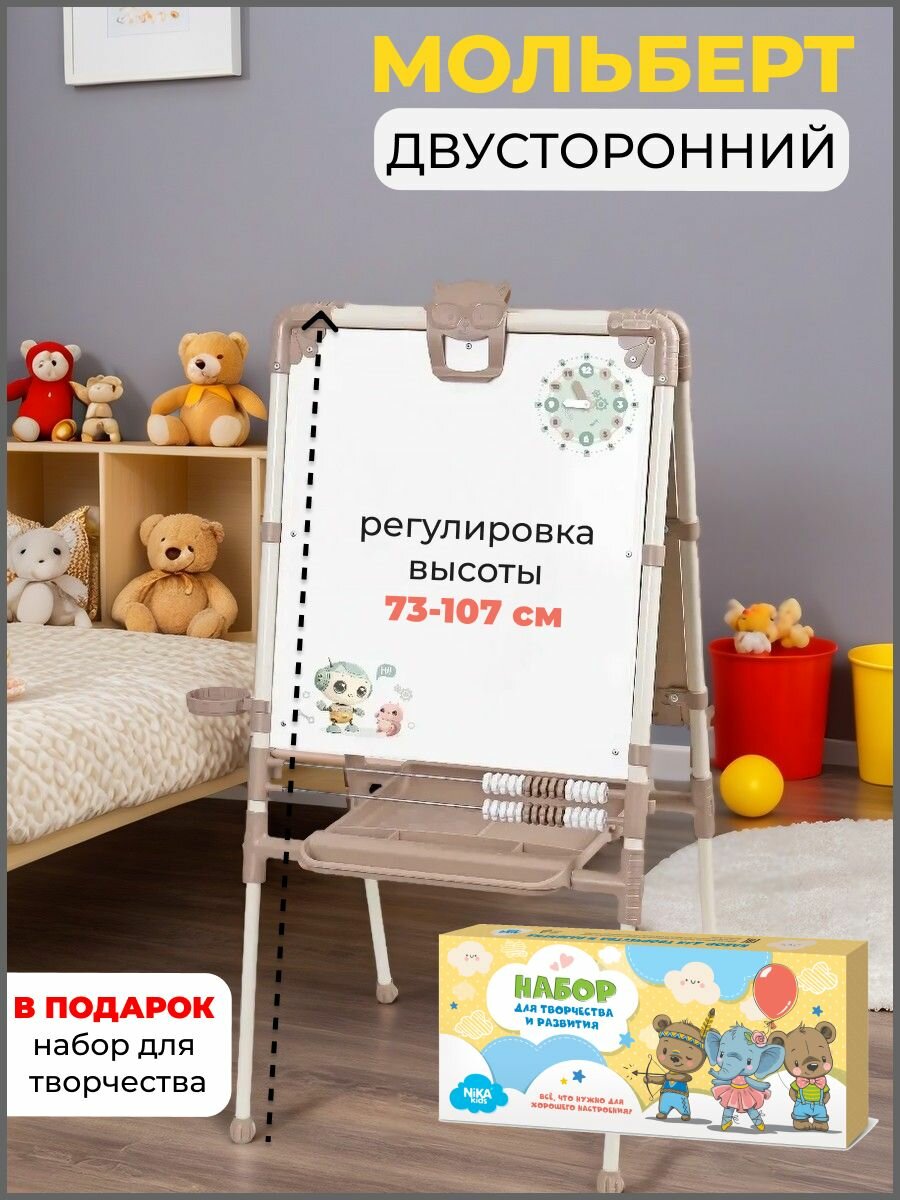 Детский мольберт двусторонний Nika с мелками и магнитной азбукой для развития творчества информация: