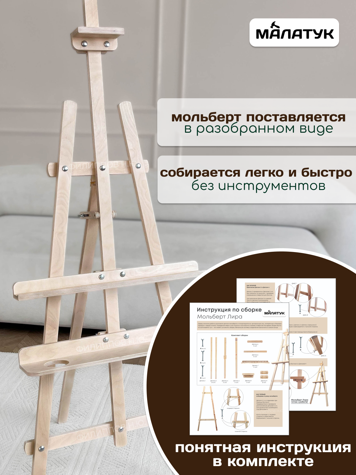 Отзывы на Мольберт с полкой Малатук для рисования деревянный напольный 140 см