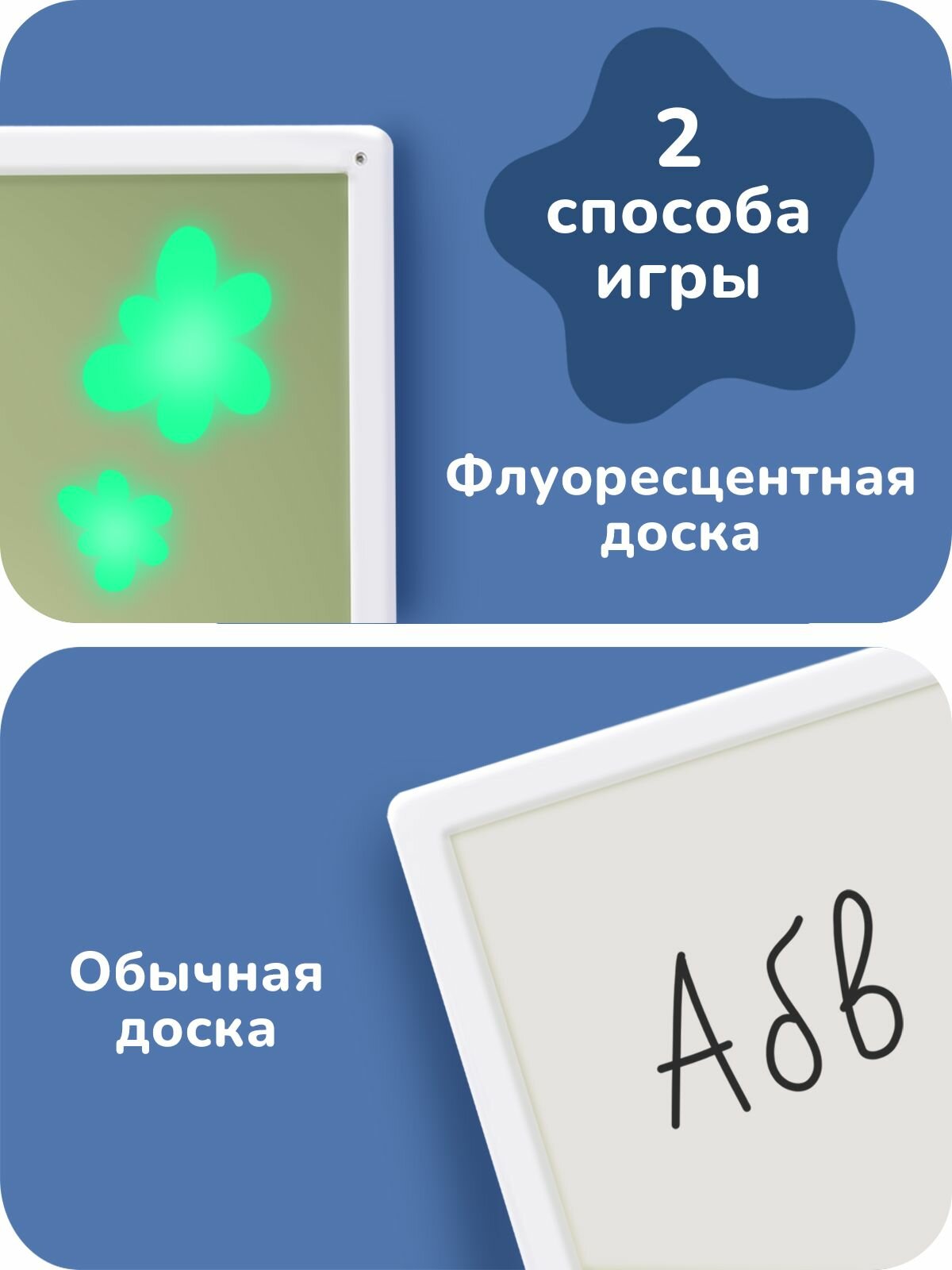 Планшет детский для рисования PlayOkay рисуй светом, набор для творчества, неоновый фонарик и 2 светящиеся ручки, 2 карточки информация: