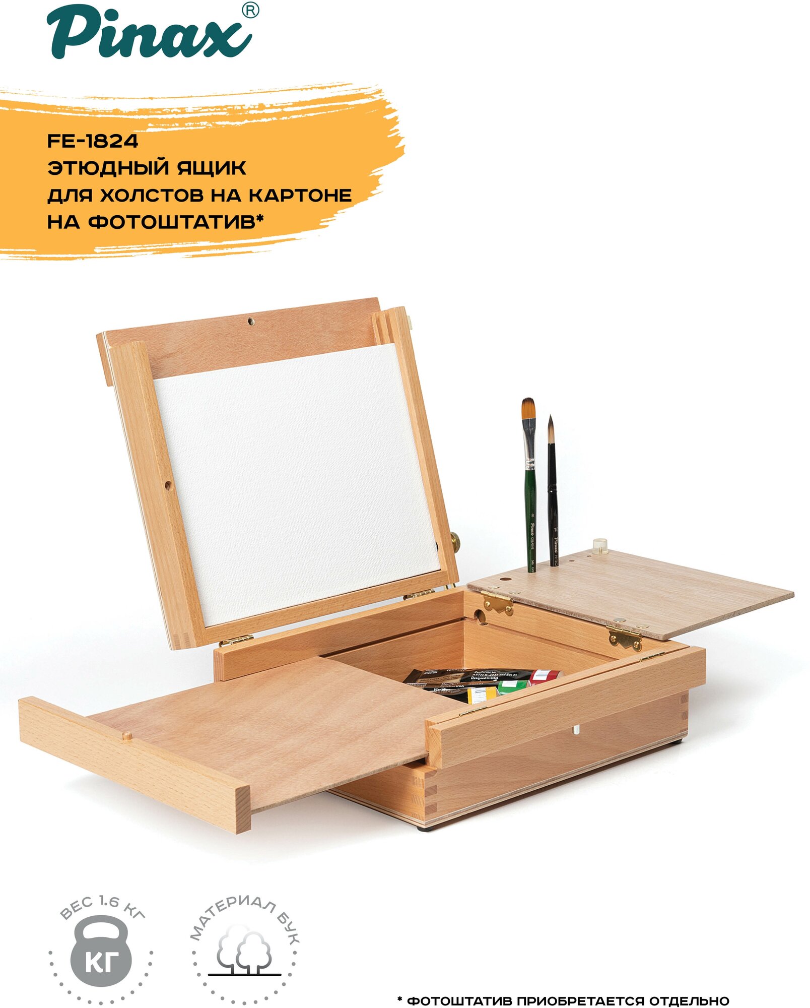 10 цен на Этюдный ящик FE-1824 для холстов на картоне с креплением на фотоштатив, кассетник на 2 холста, бук, холст 18*24 см