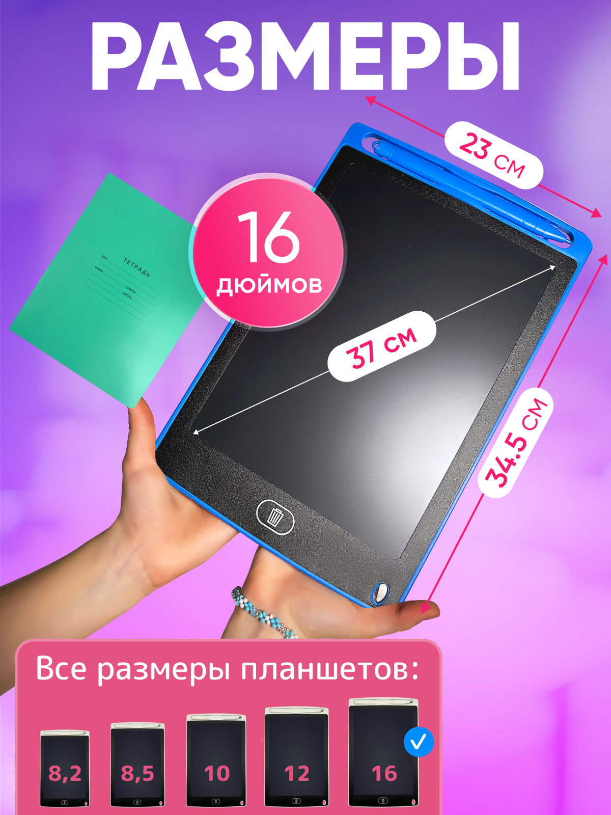 10 цен на Графический планшет для рисования 16 дюймов цветной со стилусом