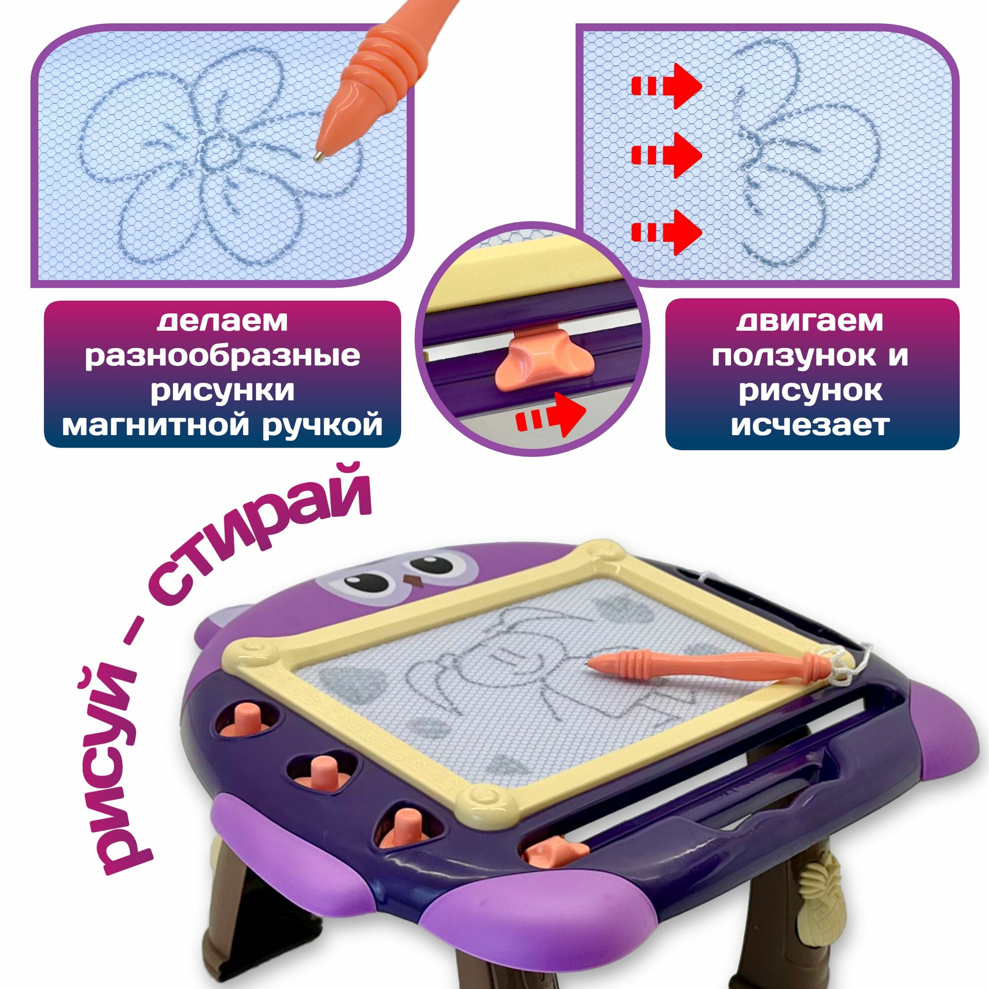 Отзывы на Доска магнитная для рисования 2в1, волшебный экран, столик, штампики, 30х25х15 см
