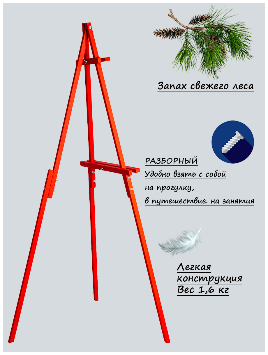 Отзывы на Мольберт тренога напольный и настольный для рисования The Old Master, складной, разборный, 140 см, красный
