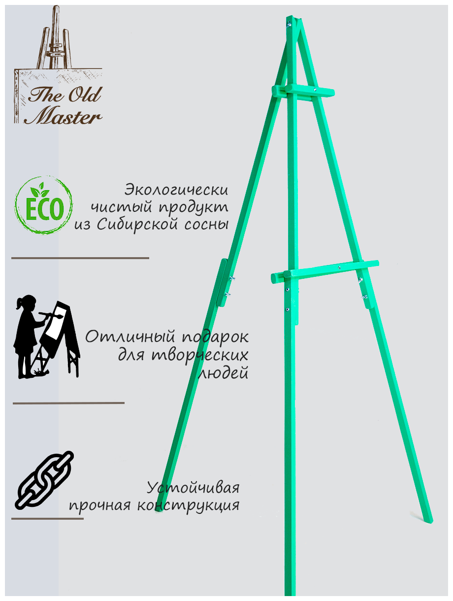 Мольберт тренога напольный и настольный для рисования The Old Master, складной, разборный, 140 см, зеленый информация: