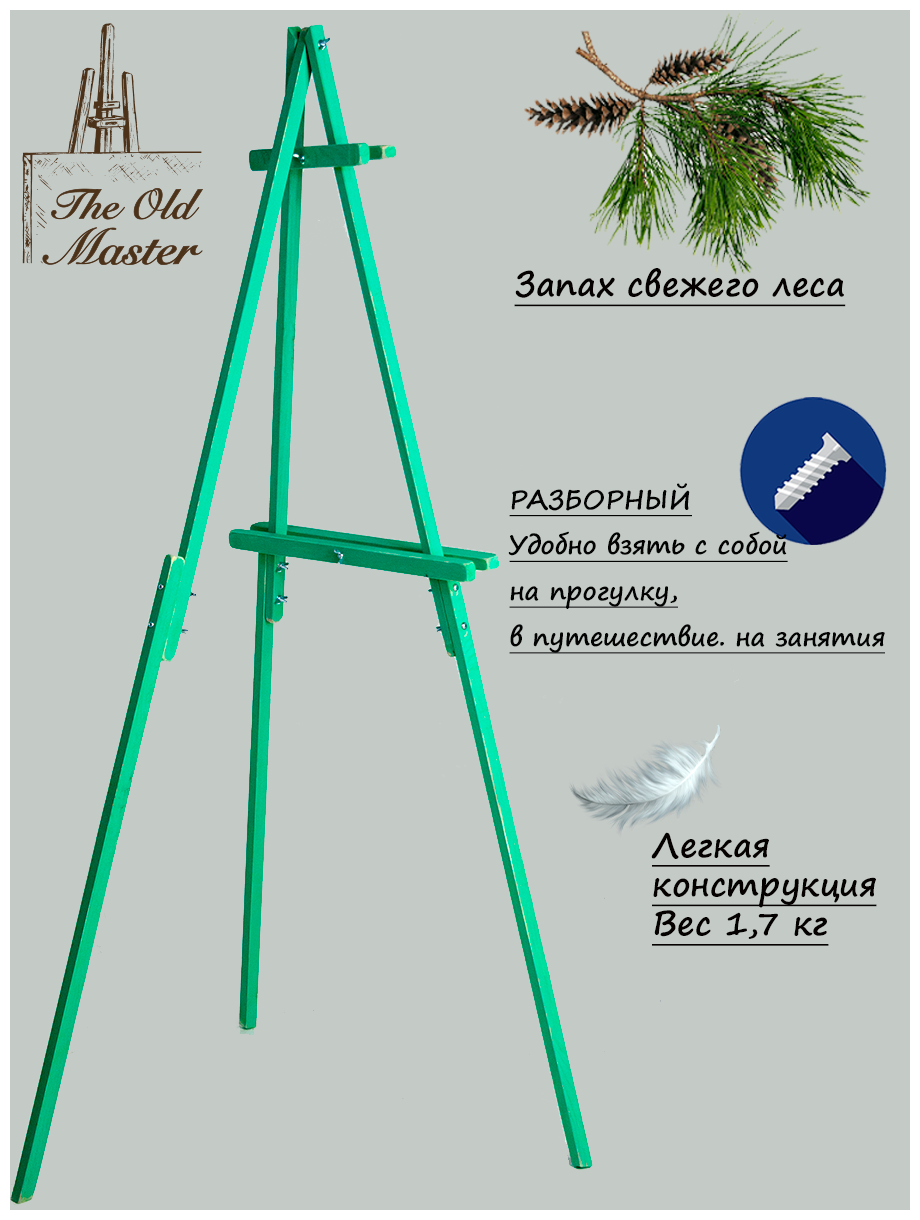 Отзывы на Мольберт тренога напольный и настольный для рисования The Old Master, складной, разборный, 160 см, ретро зеленый