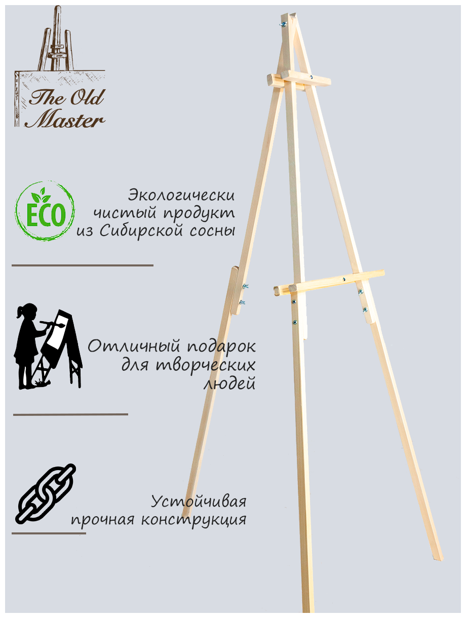 Мольберт тренога напольный и настольный для рисования The Old Master, складной, разборный, 160 см, натуральная сосна информация: