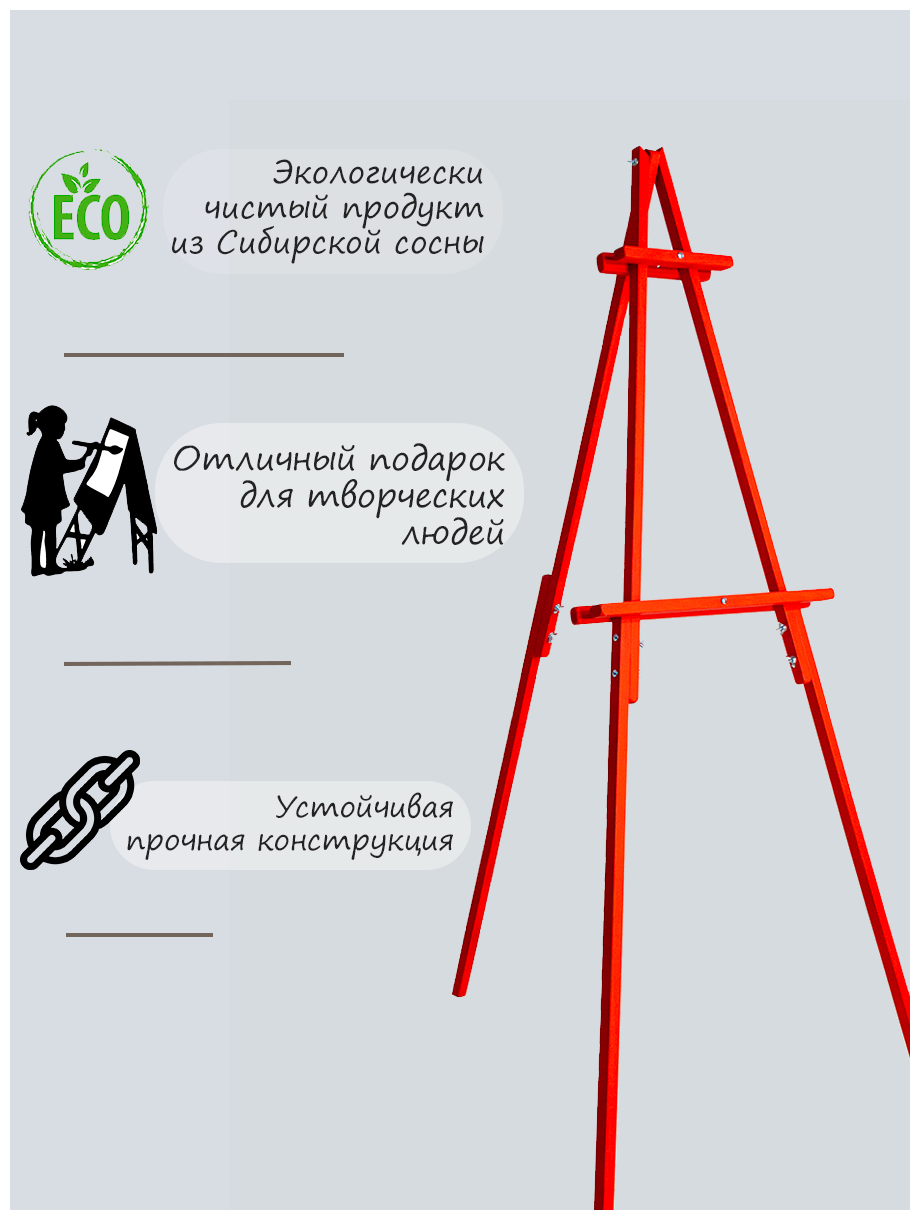Отзывы на Мольберт тренога напольный и настольный для рисования The Old Master, складной, разборный, 160 см, красный
