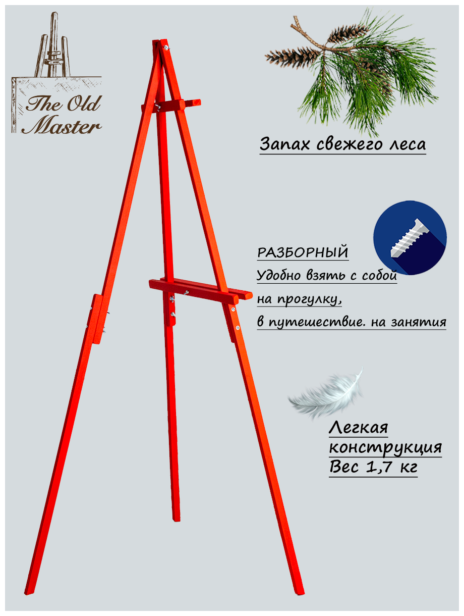 Мольберт тренога напольный и настольный для рисования The Old Master, складной, разборный, 160 см, красный информация: