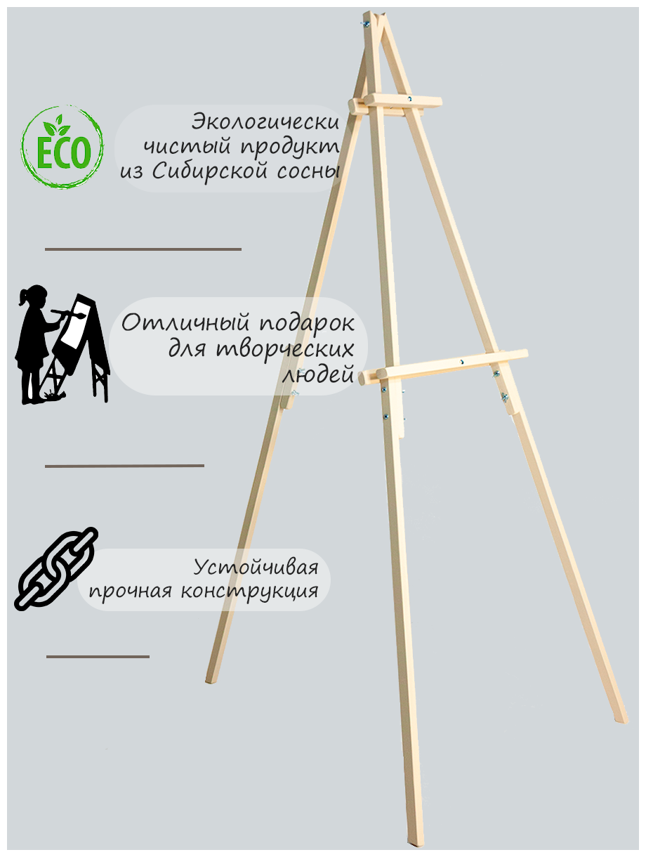 Мольберт тренога напольный и настольный для рисования The Old Master, складной, разборный, 120 см, натуральная сосна